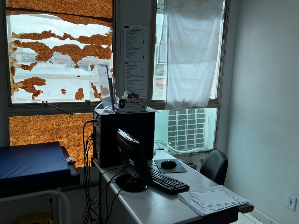 Outra servidora da unidade ressaltou a questão da estrutura precária do CRDT. “O espaço físico é pequeno para receber os nossos pacientes. Às vezes nós temos pacientes com tuberculose, monkeypox e outras doenças infectocontagiosas no mesmo espaço. Também não temos, por exemplo, um espaço adequado para abordar o paciente e precisamos conversar sem nenhuma privacidade com o paciente portador do HIV”, complementa a servidora.