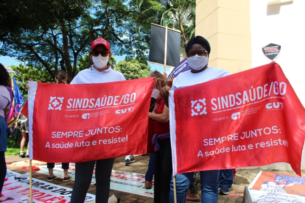 Diretoras do Sindsaúde participaram da marcha das mulheres realizada nessa terça-feira (8) no centro de Goiânia. A concentração, em celebração Dia Internacional da Mulher, ocorreu na Catedral Metropolitana de Goiânia e de lá a mobilização seguiu em caminhada até a Praça do Trabalhador.