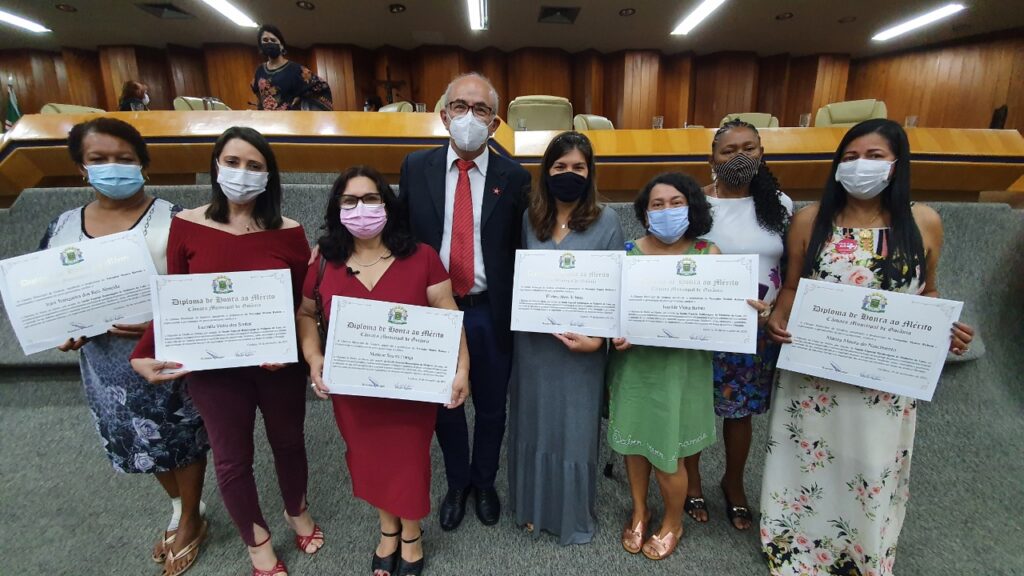 Foram homenageadas, as diretoras do Sindsaúde: Flaviana Alves Barbosa; Irani Tranqueira dos Reis Almeida; Ivanilde Vieira Batista; Luzinéia Vieira Dos Santos e Marlene Soares França.