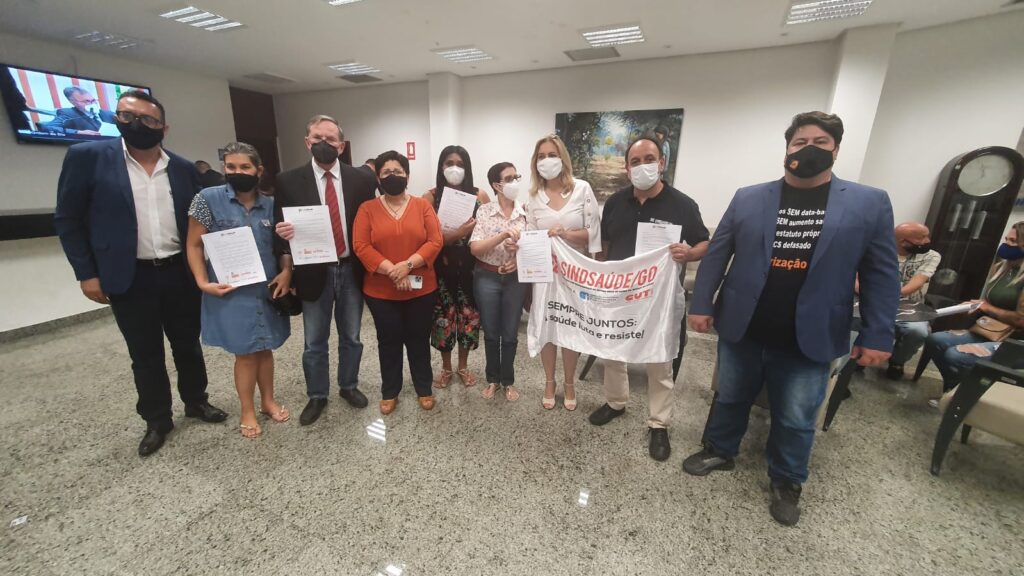 O Sindsaúde e demais entidades que compõem o Fórum dos Servidores Públicos se reuniram com deputados estaduais na tarde desta quinta-feira (9) para buscar apoio e tentar arquivar o projeto de lei que trata da venda do Hospital do Servidor. A unidade foi construída com recursos dos contribuintes do Ipasgo. Durante o encontro na Assembleia Legislativa, os Sindicatos entregaram uma carta aos parlamentares.