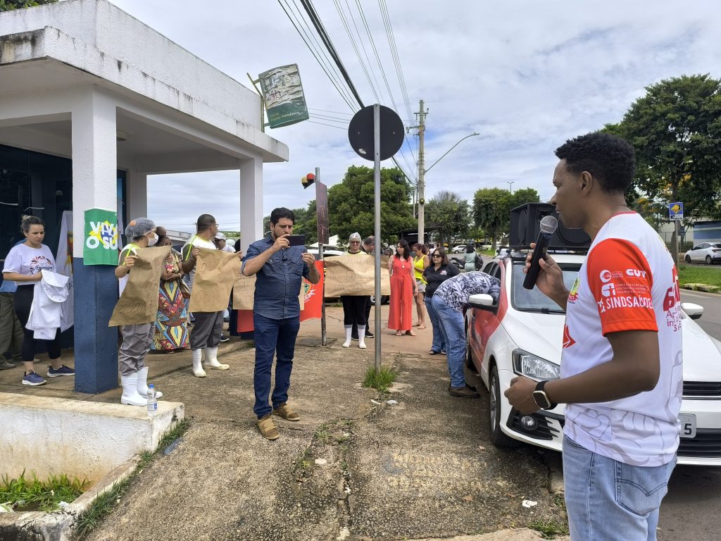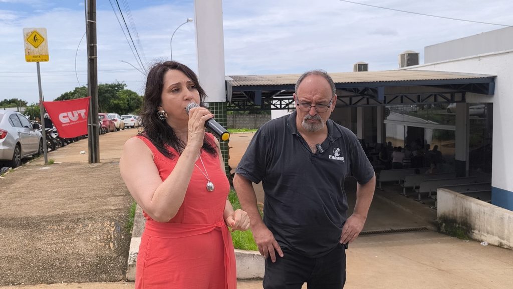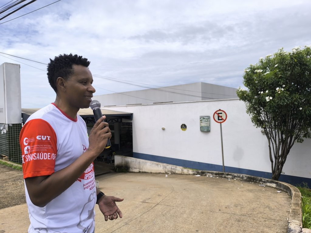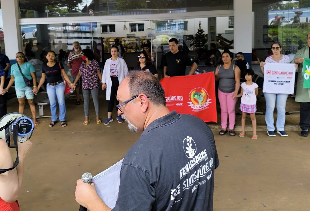 Nesta quinta-feira (5), os trabalhadores da saúde de Goiânia, junto com usuários do SUS, realizaram uma manifestação na UPA Maria Pires Perillo, conhecida como UPA Jardim do Curitiba, para reivindicar direitos trabalhistas e melhores condições de trabalho. A mobilização, marcada pelo uso de cartazes, bandeiras, carro de som e um abraço simbólico na unidade, contou com a participação de diversos profissionais e apoiadores que exigiram respostas imediatas da Prefeitura de Goiânia.