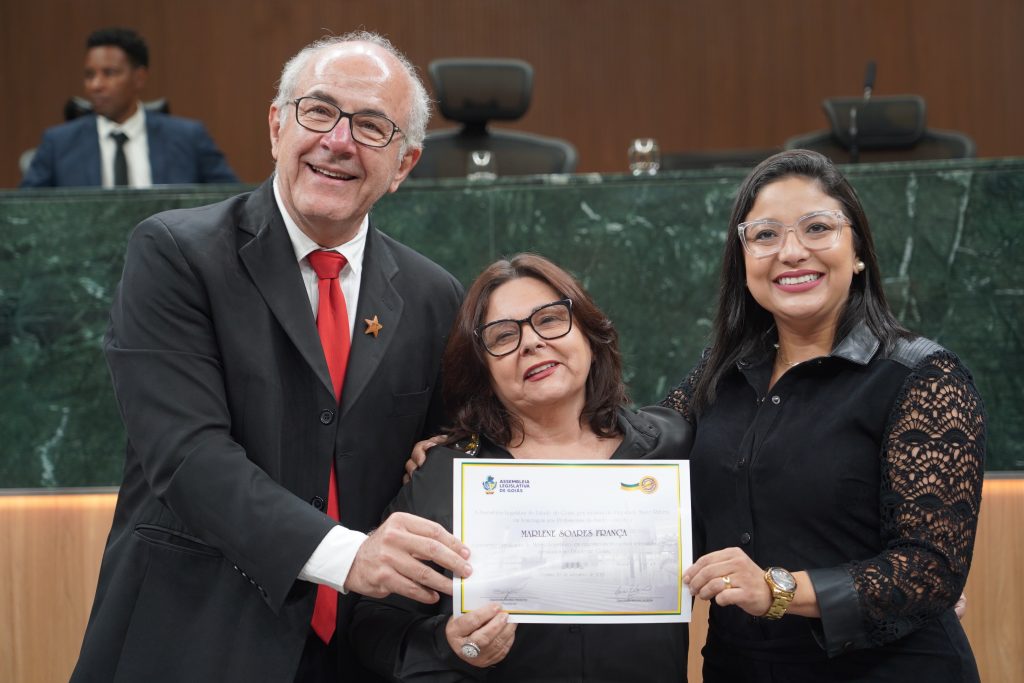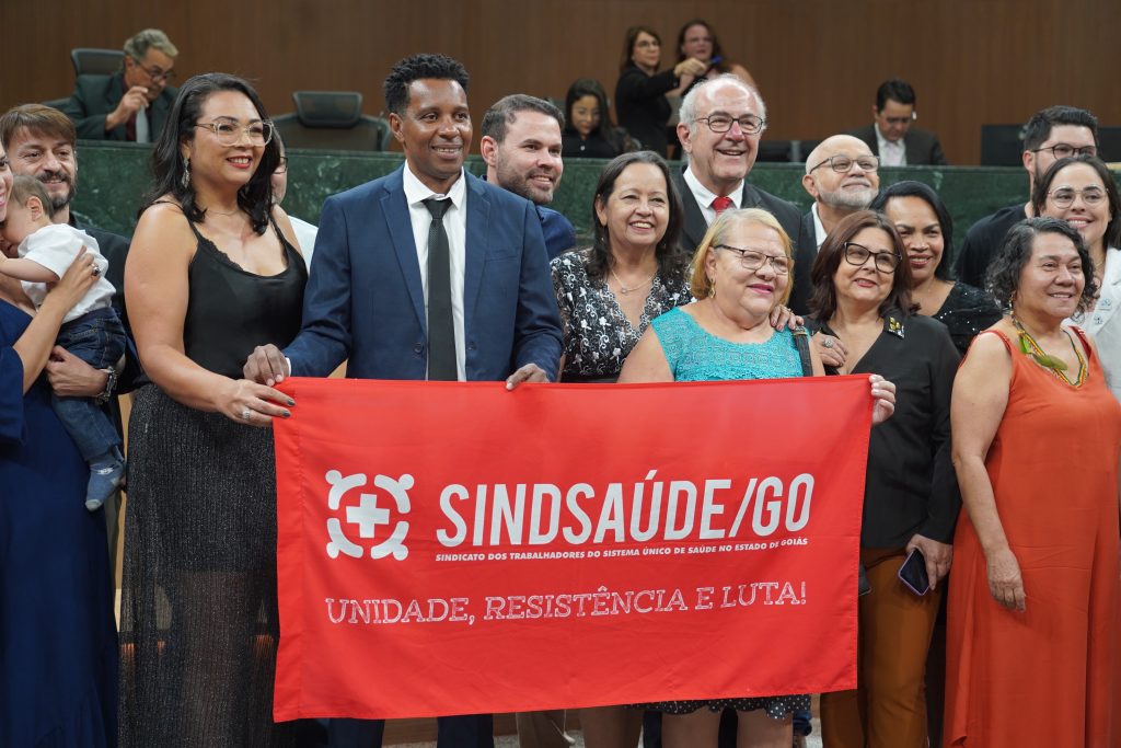 Profissionais da área da saúde receberam homenagens durante cerimônia realizada na Assembleia Legislativa de Goiás na noite de quarta-feira (20). No evento, diretores do Sindsaúde foram prestigiados com o Certificado do Mérito Legislativo, em reconhecimento aos serviços relevantes prestados ao Estado de Goiás. A solenidade, que ocorreu no Plenário Iris Rezende Machado, foi promovida pelo deputado Mauro Rubem (PT).