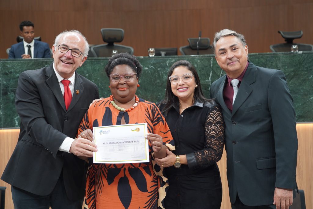 Além do vice-presidente, os seguintes diretores do Sindsaúde também foram agraciados com o Certificado do Mérito Legislativo: Elaine Silva, Marlene Soares, Sílvia Regina, Willian Matheus, Maura Inês, Alonso Julião, Ivanilde Batista e Iderlan Soares.