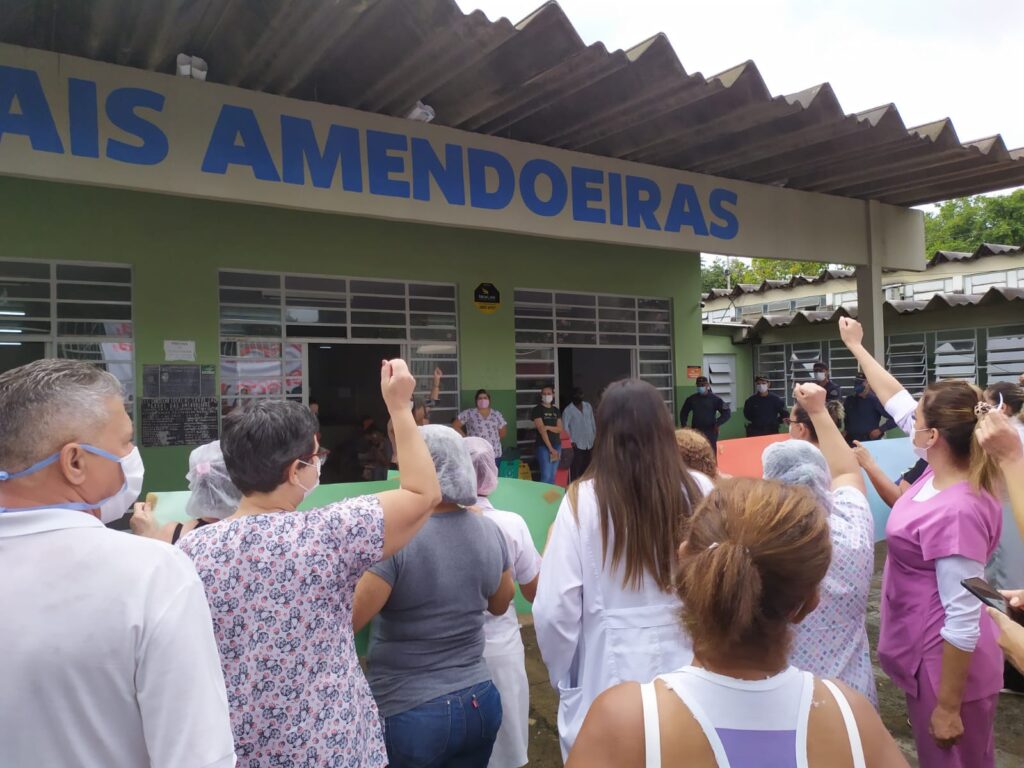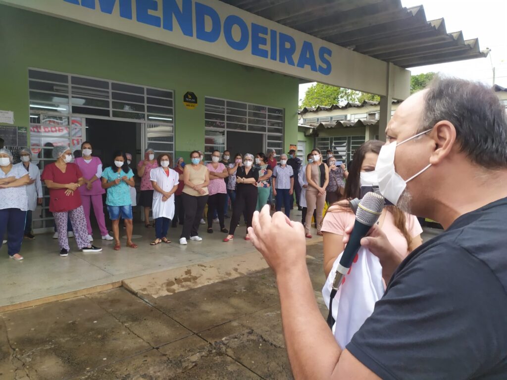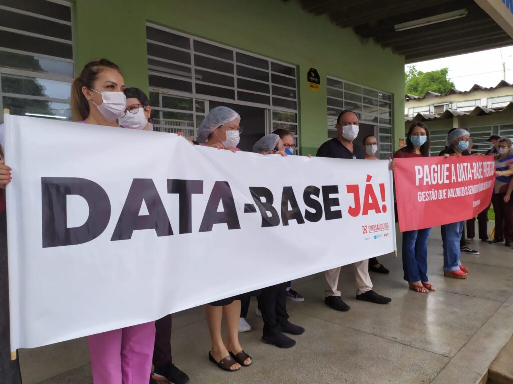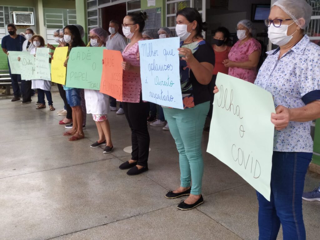 Os servidores se concentraram em frente à unidade e cobraram da prefeitura o pagamento da data-base, do quinquênio e o fornecimentos de insumos e medicamentos. Os profissionais usaram cartazes e faixas para manifestar a insatisfação com a falta de assistência na rede pública de saúde.