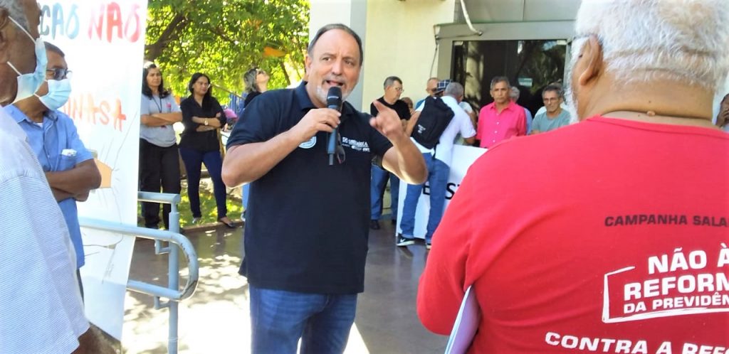 Em dia Nacional de Luta, diretores do Sindsaúde participaram do ato realizado pelo Sintsep-GO em defesa da reestruturação e do fortalecimento da Fundação Nacional de Saúde (Funasa) e contra a extinção do órgão federal.