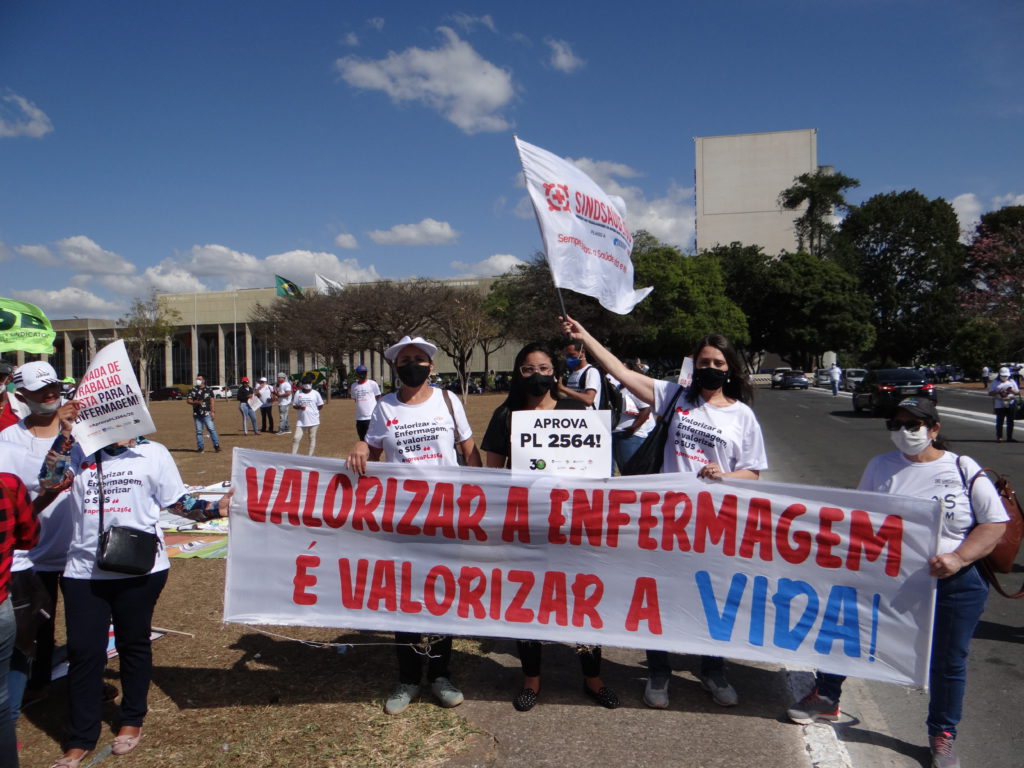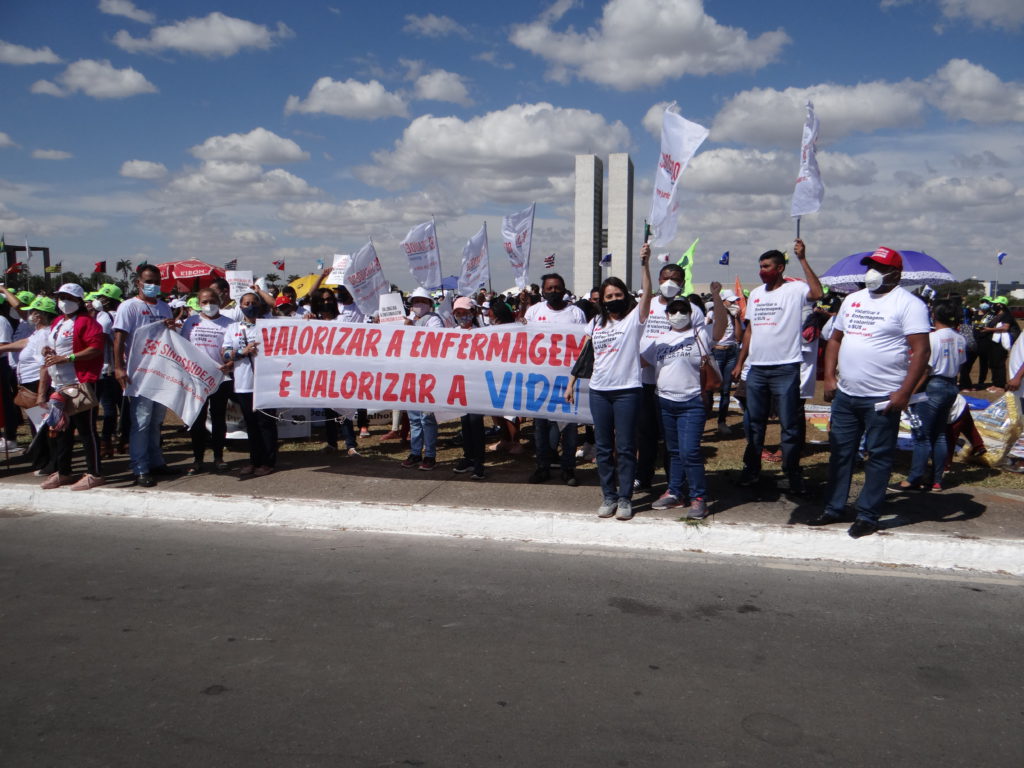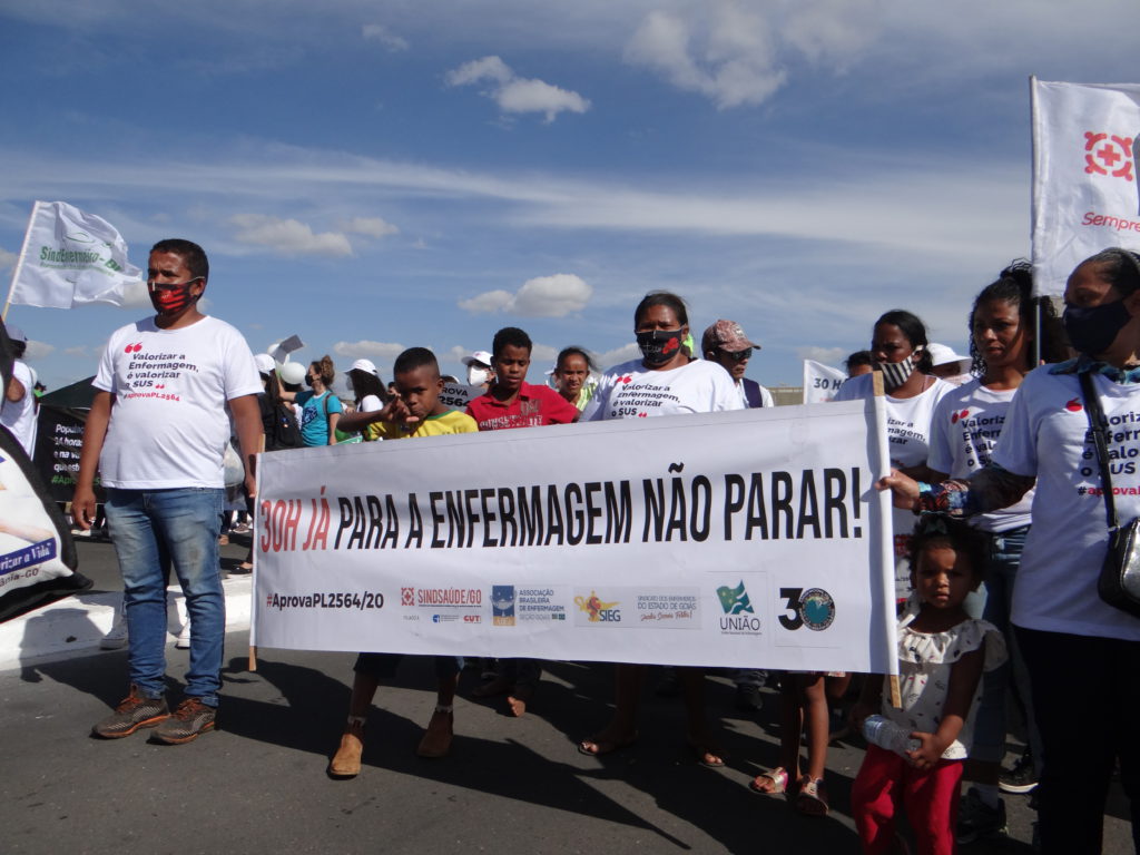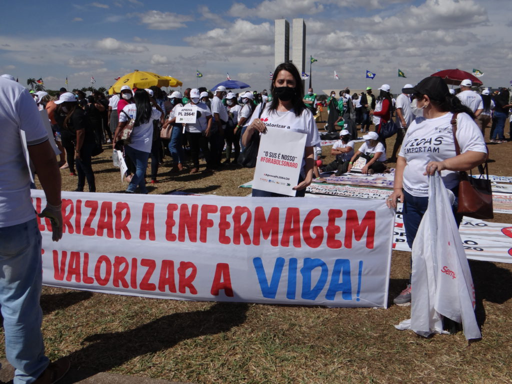 A mobilização, chamada de “Valorizar a Enfermagem é valorizar o SUS”, aconteceu na quinta-feira (5), na Praça das Bandeiras onde a categoria cobrou a aprovação do Projeto de Lei 2564/20.