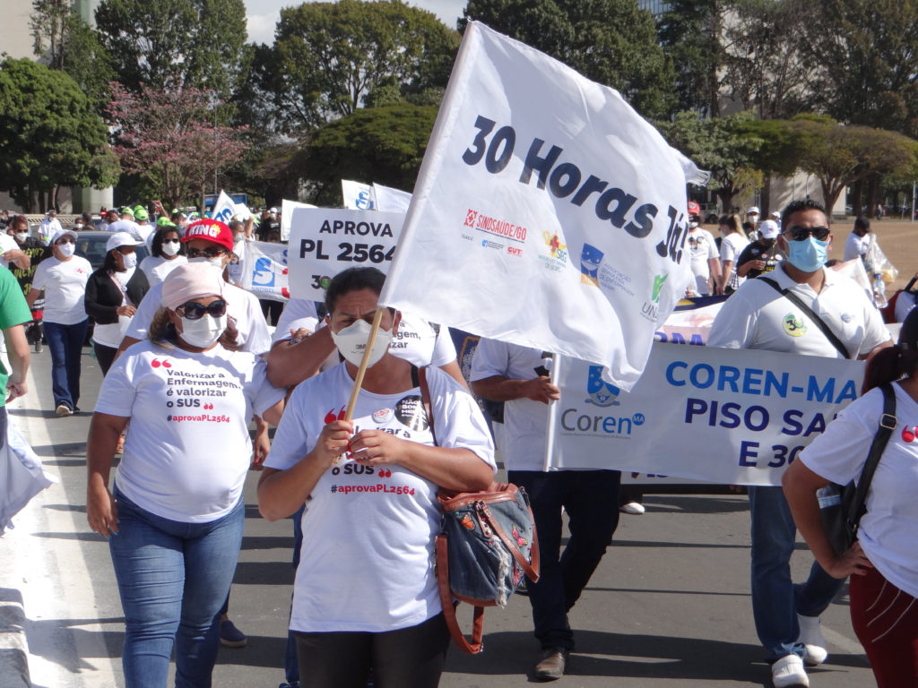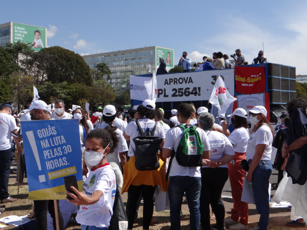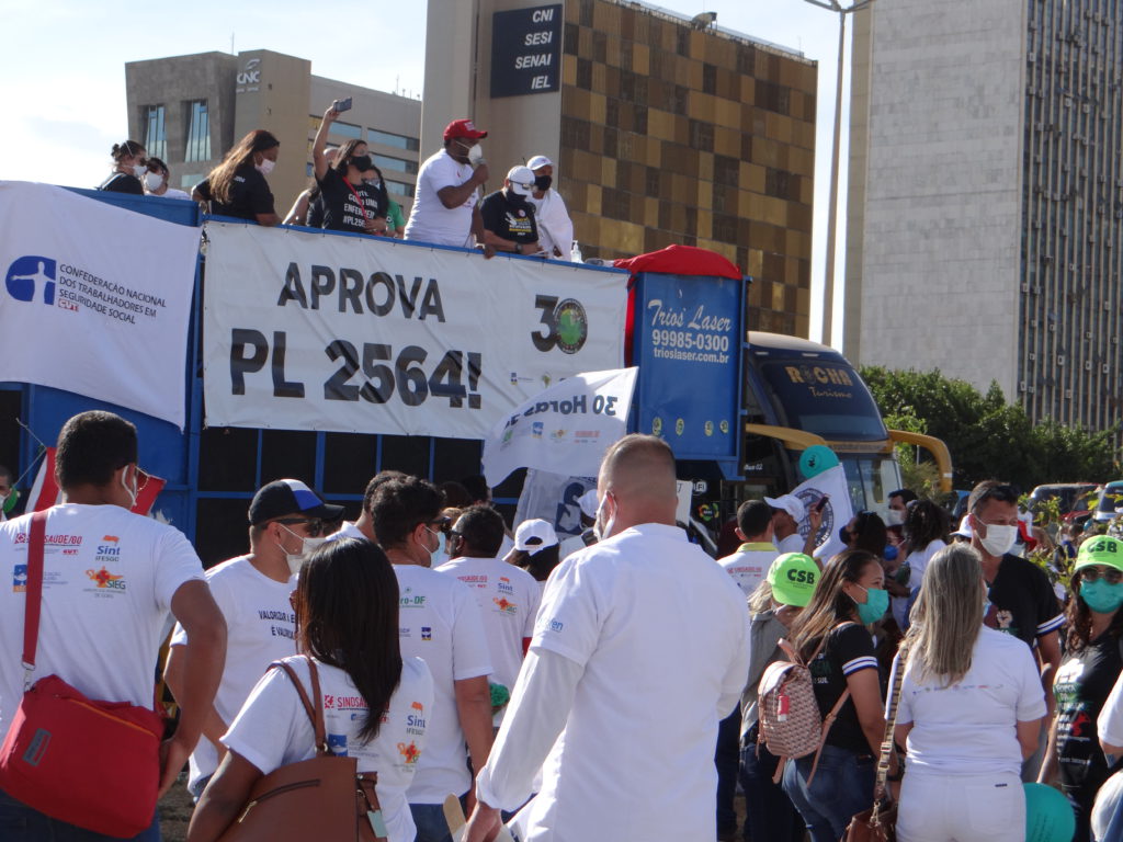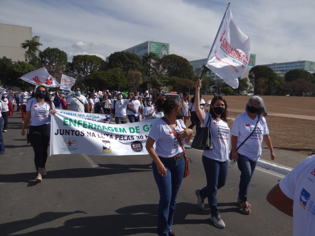 O Sindsaúde e profissionais da enfermagem de todo país estiveram presente no Dia Nacional da Saúde em Brasília. Na ocasião, ocorreu um grande ato em defesa do piso salarial e da jornada de 30 horas semanais da categoria.