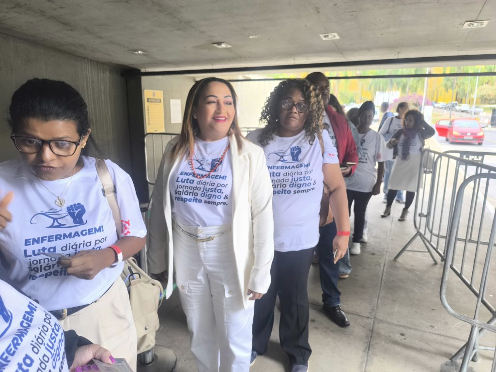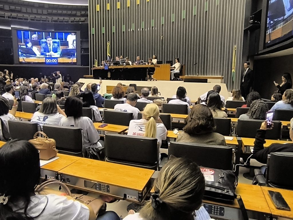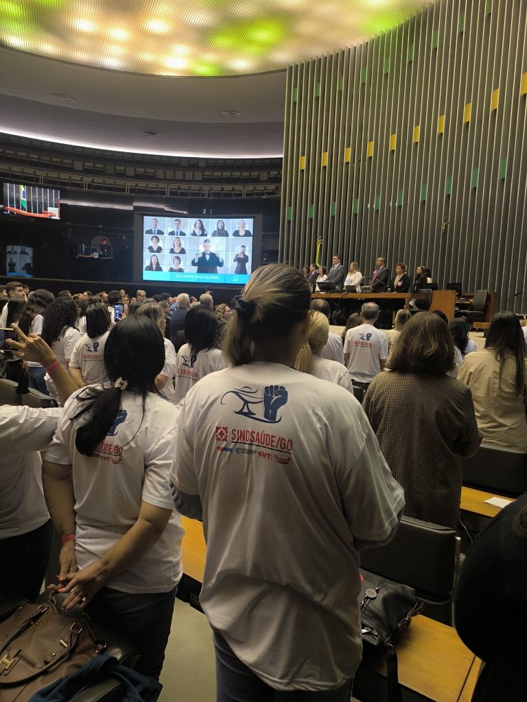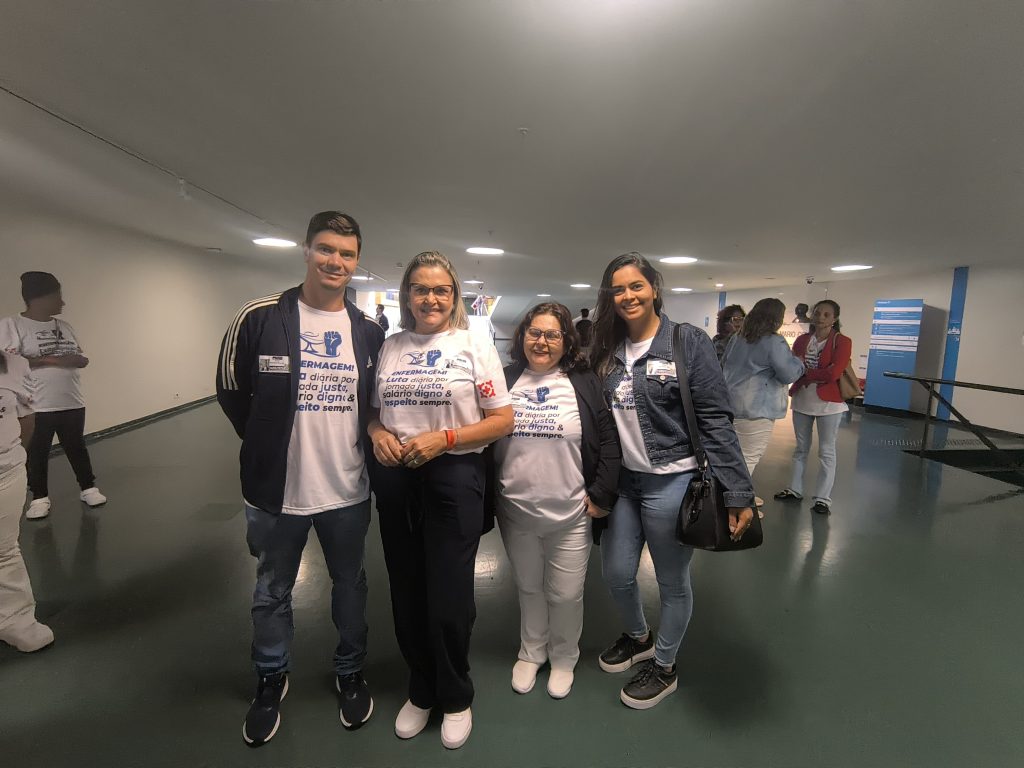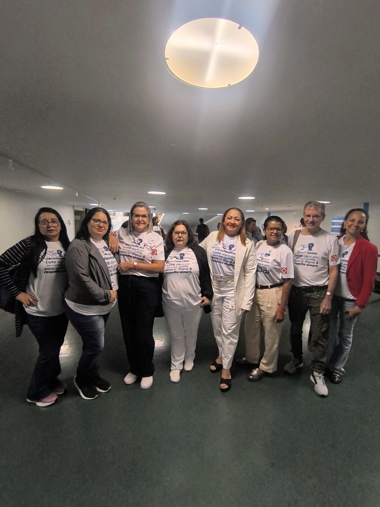 O Sindsaúde levou em caravana trabalhadores e trabalhadoras da enfermagem para serem celebrados por suas conquistas e trajetória dentro da profissão, nesta quarta-feira (14), na Câmara dos Deputados, em Brasília. A homenagem ocorreu em ocasião do Dia Internacional da Enfermagem, comemorado na última segunda-feira (12), e também foi ocasião de manifestar-se contra condições desfavoráveis à profissão mesmo após muita luta.