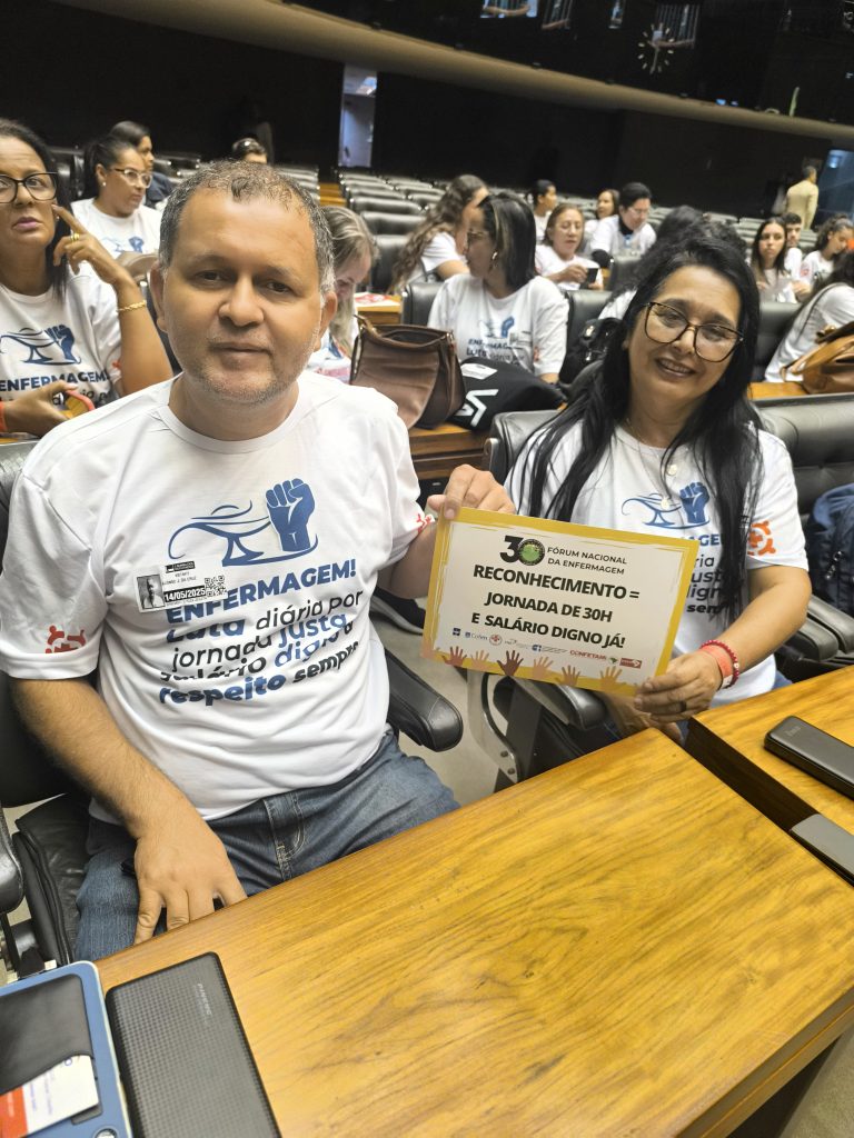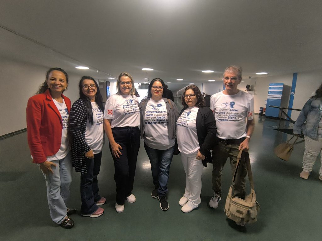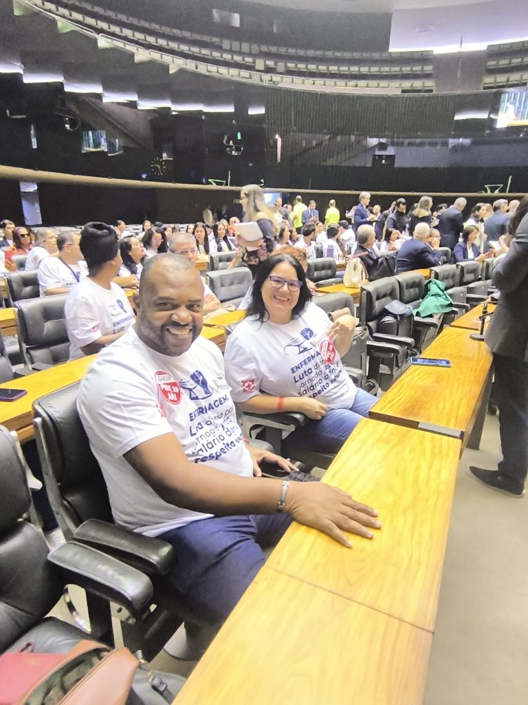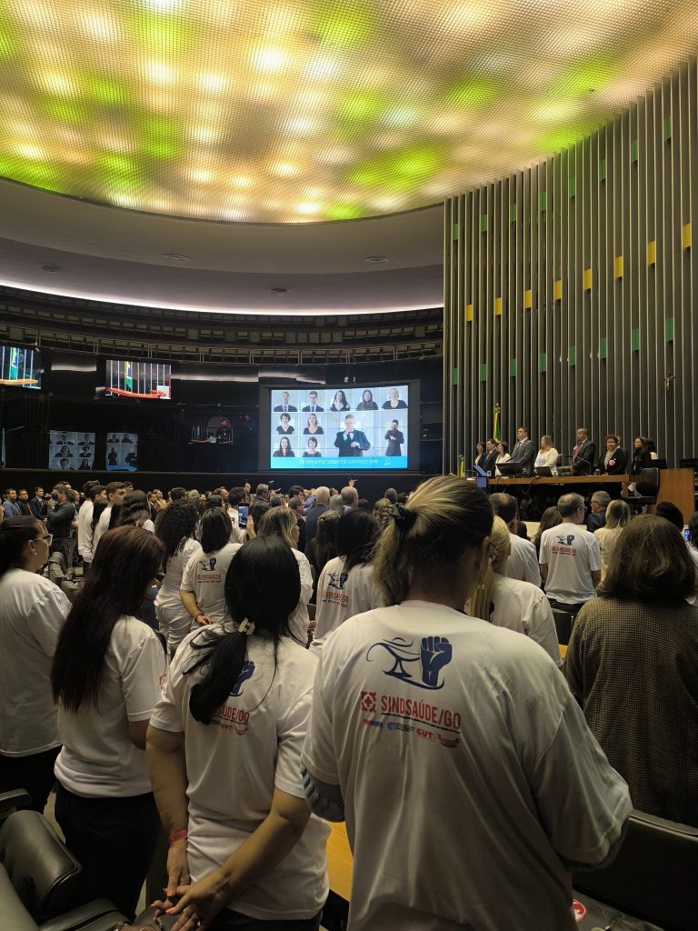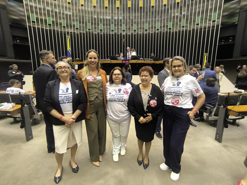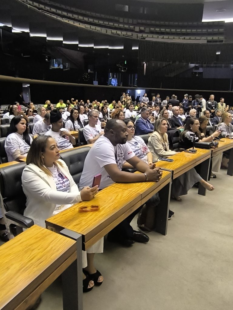 O Sindsaúde levou em caravana trabalhadores e trabalhadoras da enfermagem para serem celebrados por suas conquistas e trajetória dentro da profissão, nesta quarta-feira (14), na Câmara dos Deputados, em Brasília. A homenagem ocorreu em ocasião do Dia Internacional da Enfermagem, comemorado na última segunda-feira (12), e também foi ocasião de manifestar-se contra condições desfavoráveis à profissão mesmo após muita luta.