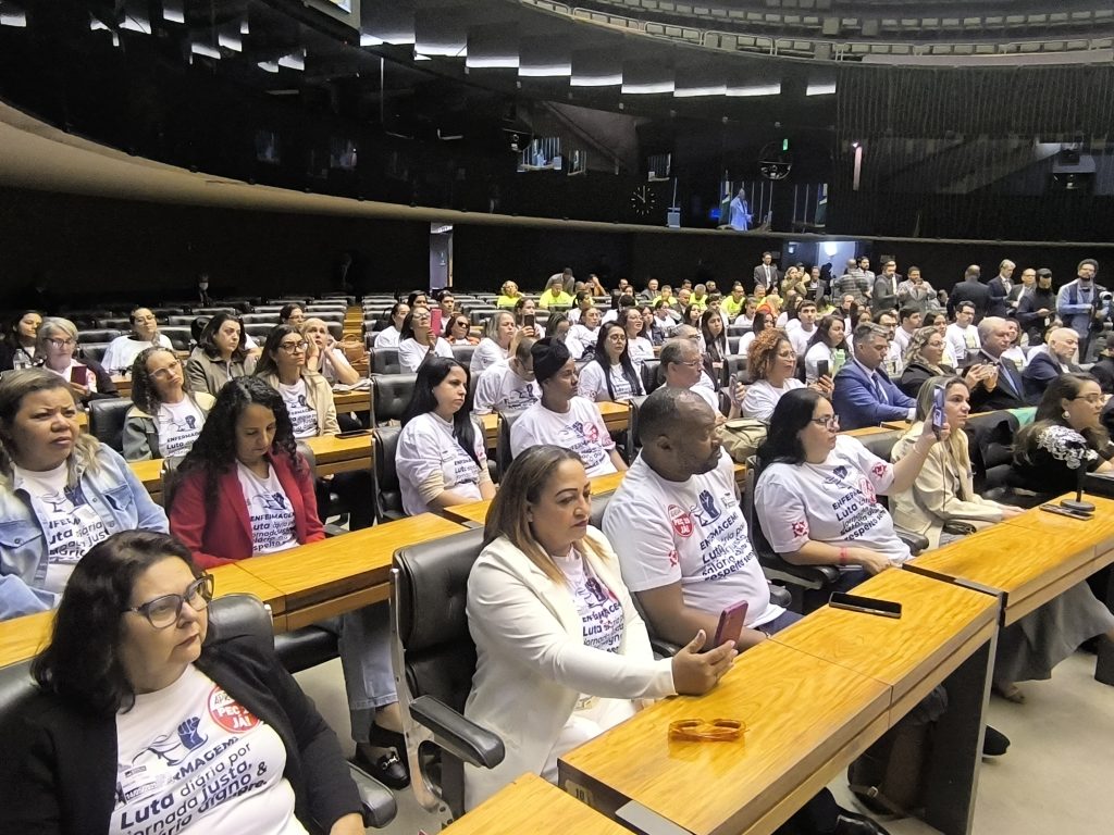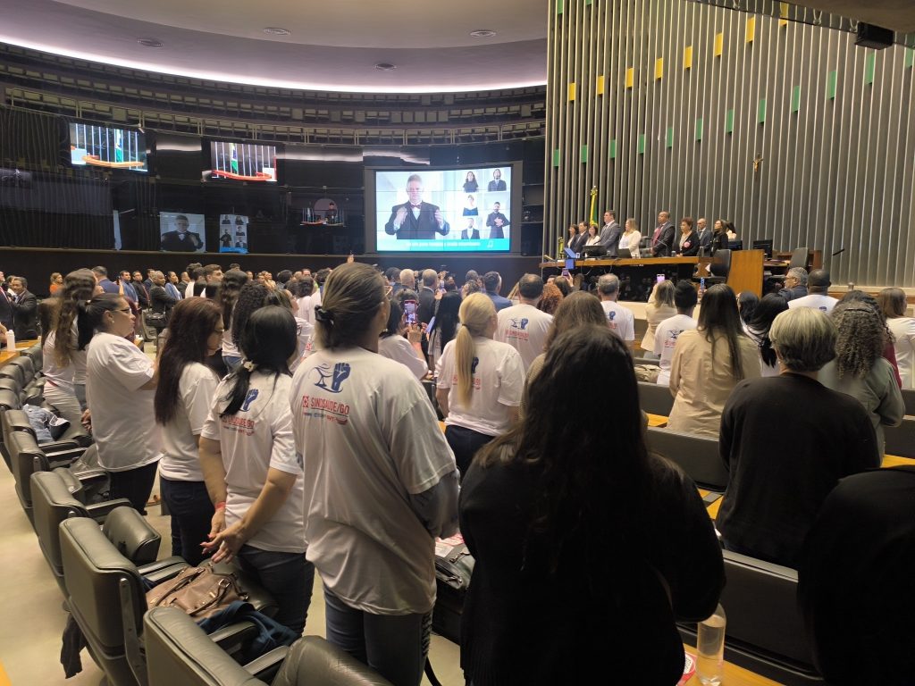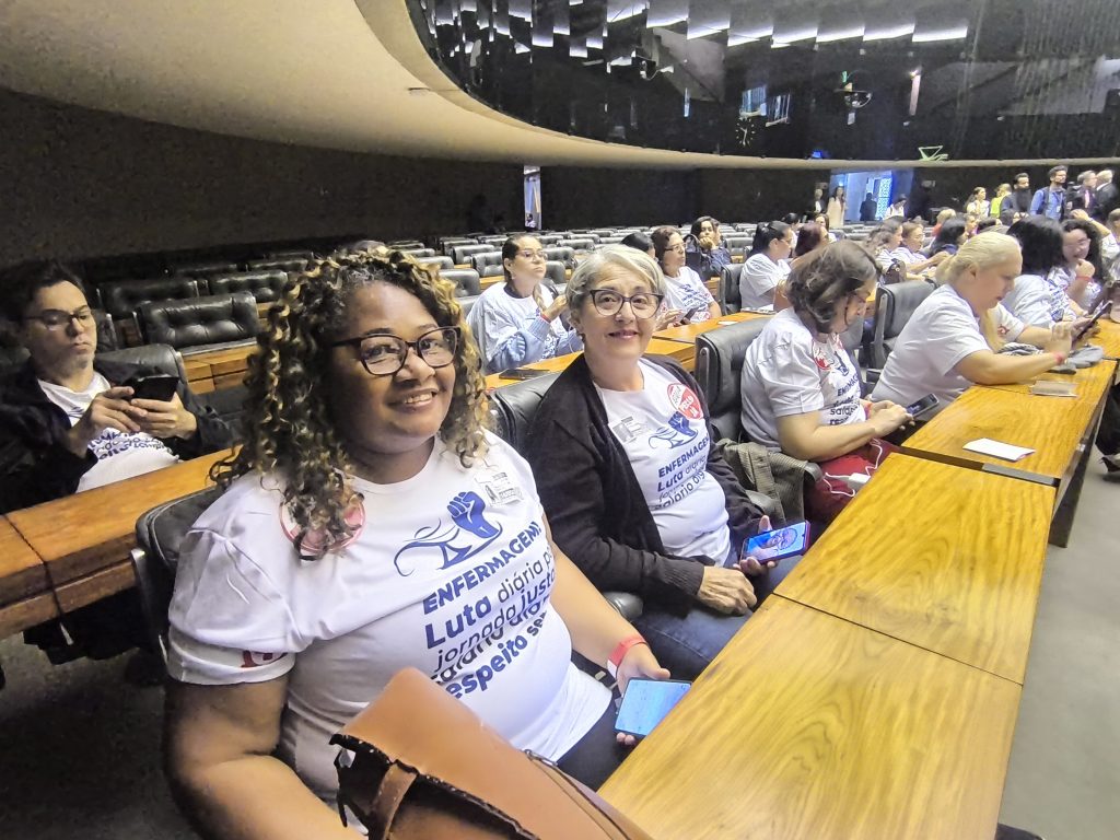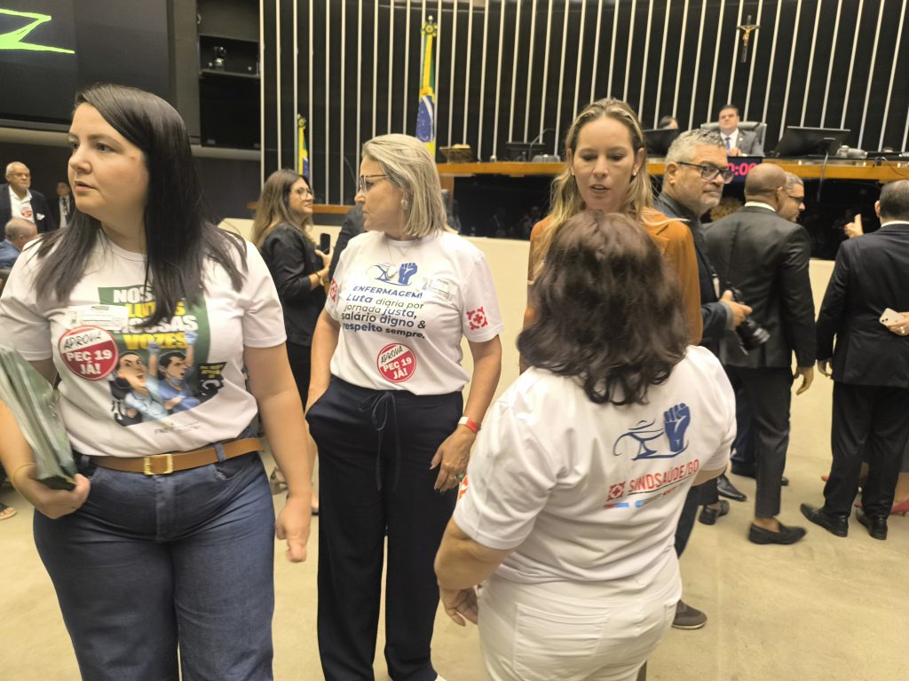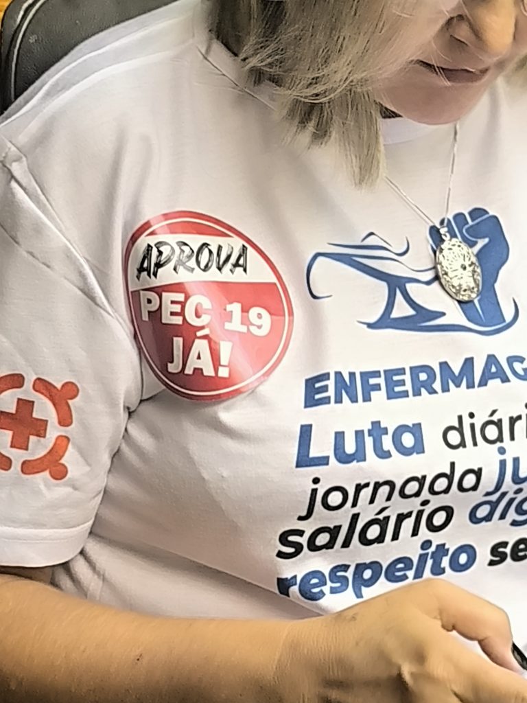 Deputados e deputadas federais presentes na sessão solene reforçaram a necessidade de aprovação da PEC, destacando a importância da enfermagem para a nação, principalmente em momentos de pandemia e epidemia. As falas foram recebidas a gritos em coro de “aprovação da PEC 19 já”.