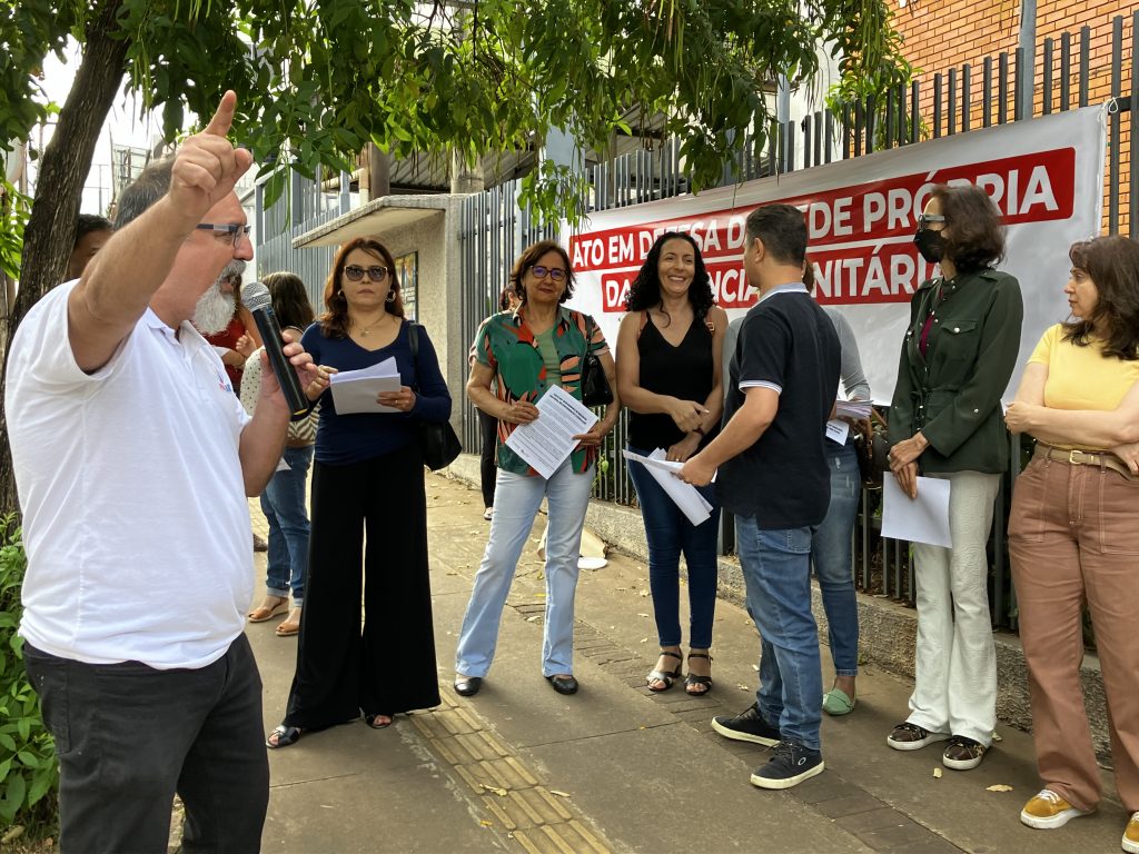 Na terça-feira (28), o Sindsaúde, o Sindicato dos Enfermeiros no Estado de Goiás (Sieg), e os trabalhadores municipais da Vigilância Sanitária realizaram um protesto em frente à sede do órgão para reivindicar a permanência no Setor Leste Universitário, onde se encontra atualmente. Os manifestantes expressaram sua insatisfação com a proposta de mudança e defenderam a manutenção dos serviços na sede atual.